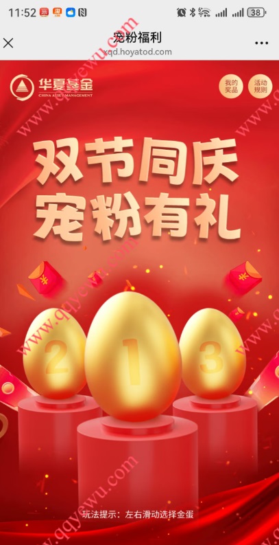 华夏基金双节同庆宠粉福利抽微信红包,每天3次砸蛋机会,都可以去参与下。