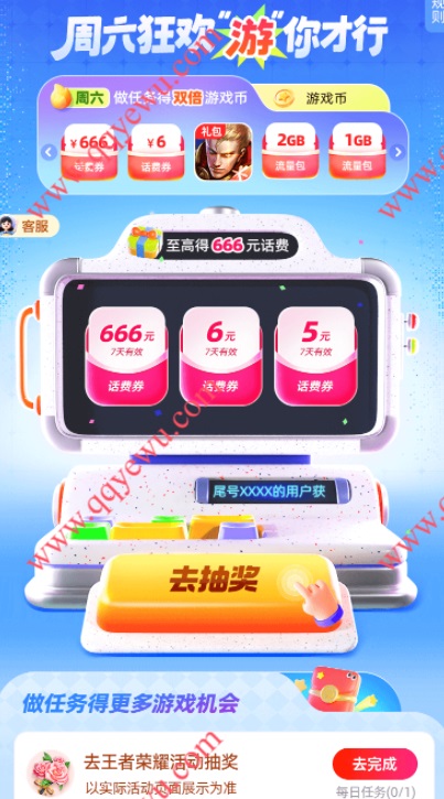 移动周六游戏日抽5-666元话费券,流量包等,有兴趣的可以去参与下,