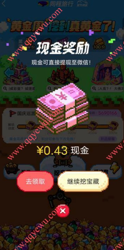 - › 同程旅行黄金周挖宝藏抽微信红包