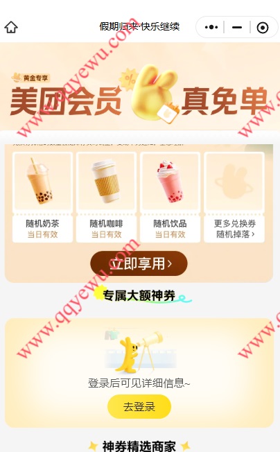 美团假期归来免费领饮品/冰激凌等免单券 号多可多撸,打开活动点【立即享用】领取,都可以去参与下。