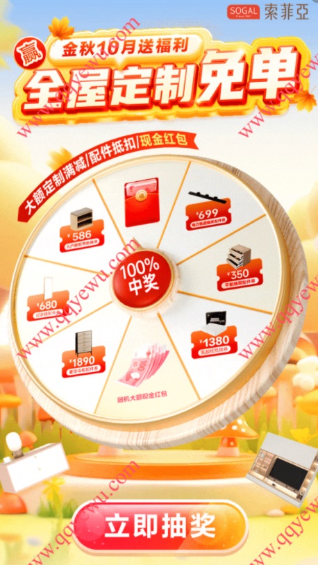 索菲亚2025金秋大转盘抽微信红包,打开微信推文点图片参与,直接抽奖。
