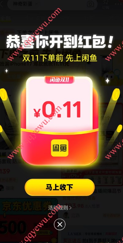闲鱼神奇彩蛋抽最高1111元无门槛红包