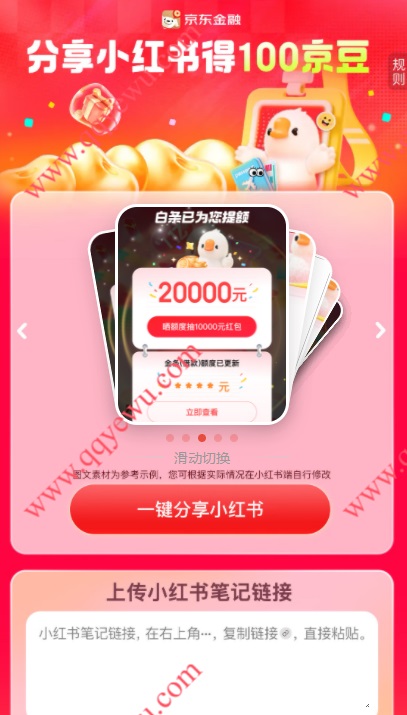 京东金融分享小红书得100京豆 价值1元