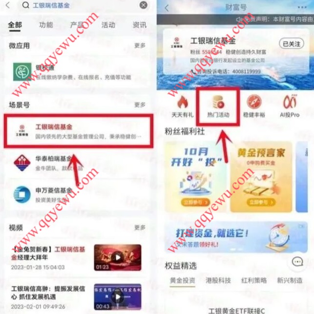 打开工商银行APP顶部搜索【工银瑞信基金】场景号进入后点【热门活动】进入后几个活动都可参与。