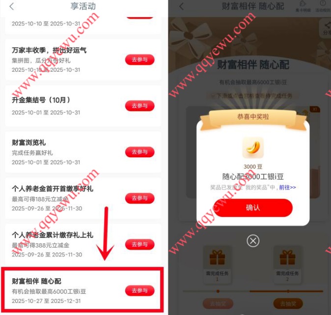 工行财富相伴随心配抽最高6000个i豆 可兑微信立减金等