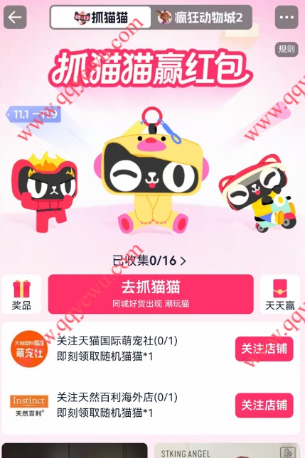 置顶原因:给大家整理了各种猫的链接,把链接发给淘宝好友 每个点进去抓猫,没有抓到的就重新进抓,最后再看自己少什么猫,然后反复抓,抓完开大奖