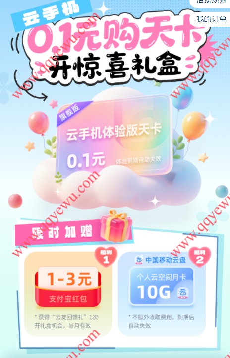 云手机支付0.1元抽1-3元支付宝红包,三网用户都能参与
