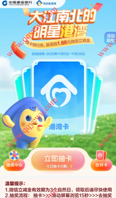 建行劳动者港湾大江南北抽1-1.88元微信立减金