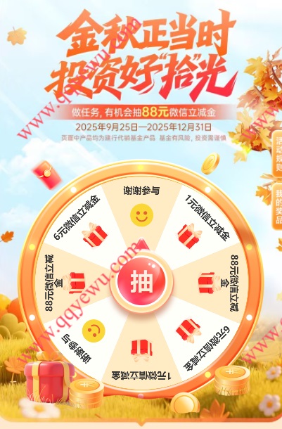 建行金秋正当时8个活动抽1-88元微信立减金,每个活动都进去报名完成简单的浏览、关注任务抽,可中多次