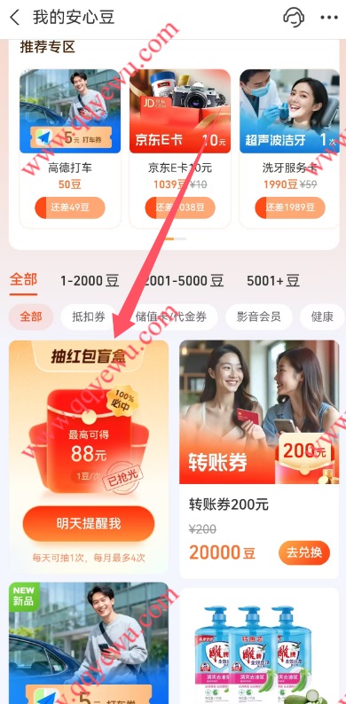 支付宝安心豆盲盒每天必中最高88元红包,每天签到领1个豆,然后下拉点【抽红包盲盒】进行抽奖,每天都可以抽1次