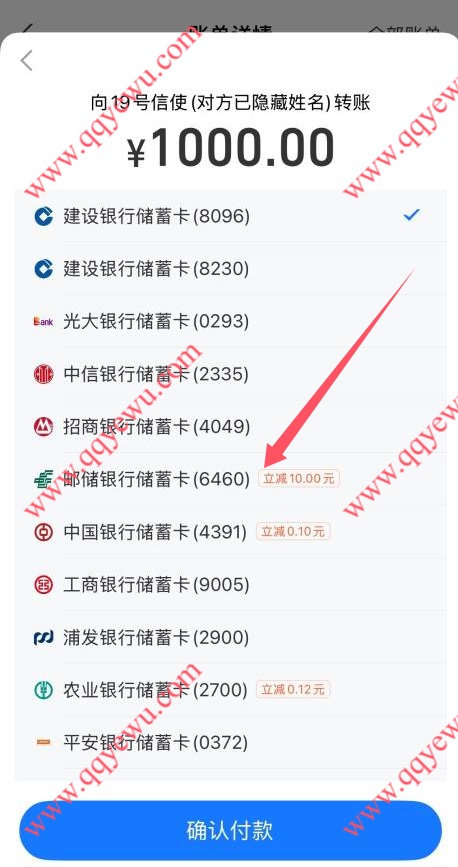 支付宝邮储收款1000立减10元 大小号互撸