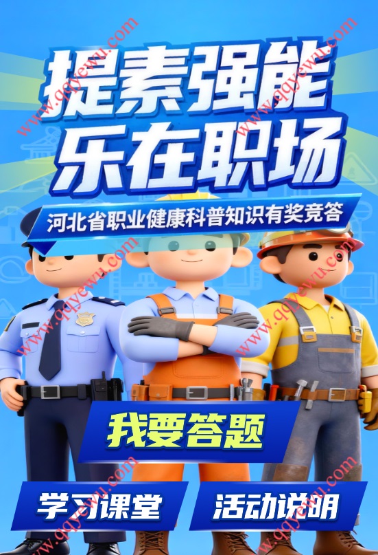河北职业健康科普答题抽0.3-3元微信红包,每天5次答题机会,5题全答对抽奖,有单选题和多选题,多选题一般都是全选