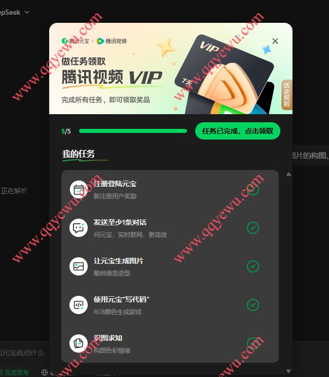 腾讯元宝完成任务领7天腾讯视频VIP会员