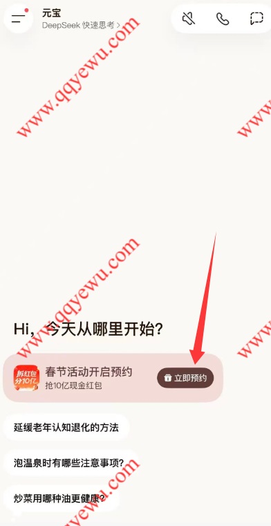 打开腾讯元宝APP首页【立即预约】参与