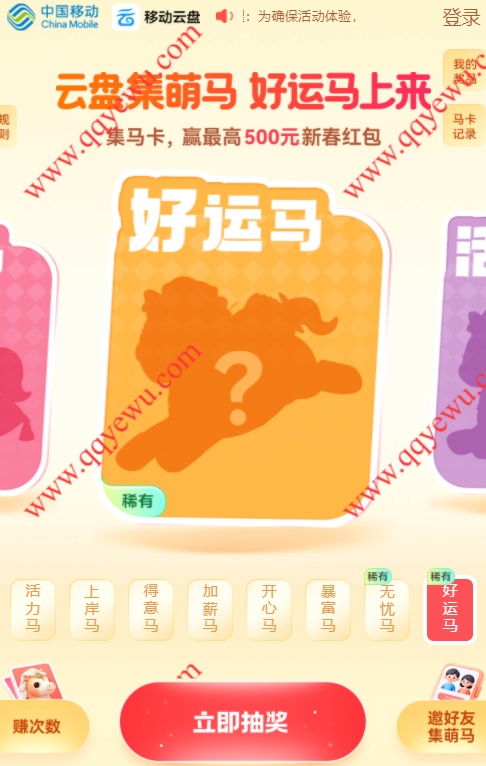 - › 移动云盘集萌马卡抽0.5-500元支付宝红包微信立减金...