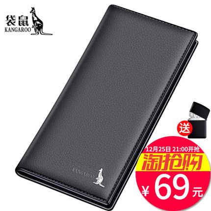 袋鼠钱包男士长款真皮超薄头层牛皮拉链钱夹日韩青年商务皮夹子潮
