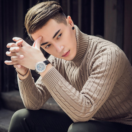 高领毛衣男秋冬季韩版潮流修身个性针织衫青年套头毛线衣加绒加厚