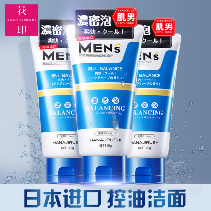 花印男士洗面奶控油清洁毛孔补水保湿磨砂日本男生洁面乳改善黑头