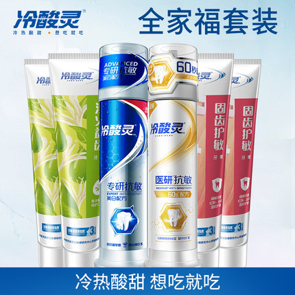 冷酸灵全家福牙膏套装泵式按压式牙膏套装全家共享牙膏组合抗敏感