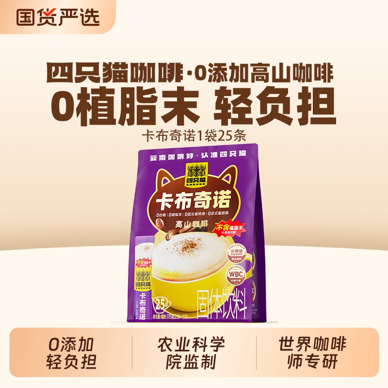 四只猫!蓝山特浓拿铁卡布奇诺咖啡25条