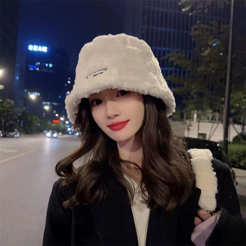 毛绒渔夫帽子女秋冬羊羔绒加厚显脸小保暖