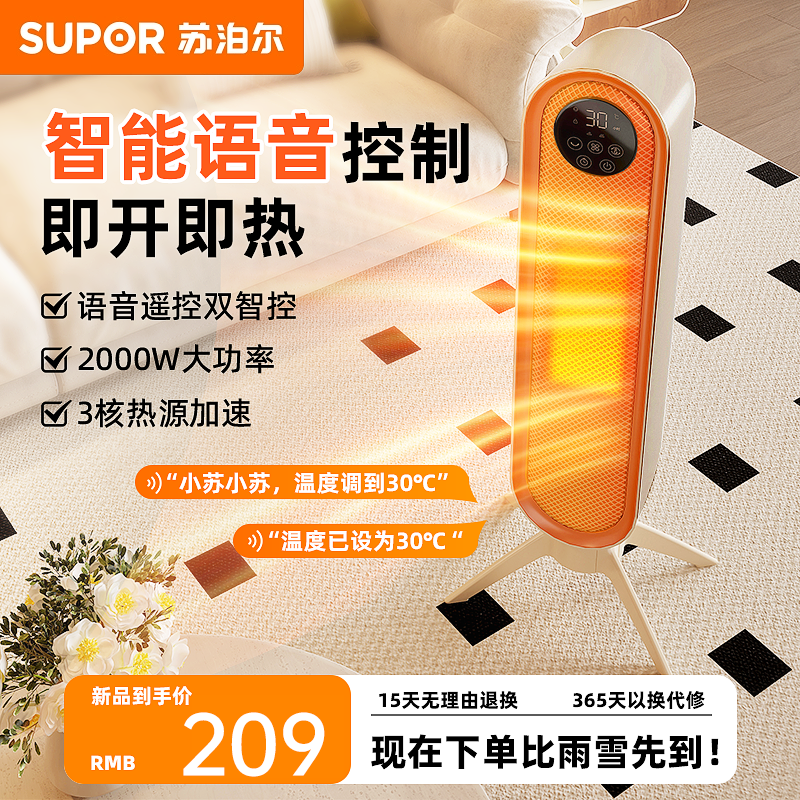 【晒fan20元】苏泊尔三核立式暖风机取暖器