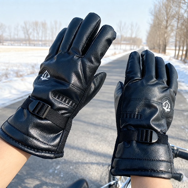 【杰盘】男女加厚加绒pu皮手套保暖骑行防寒