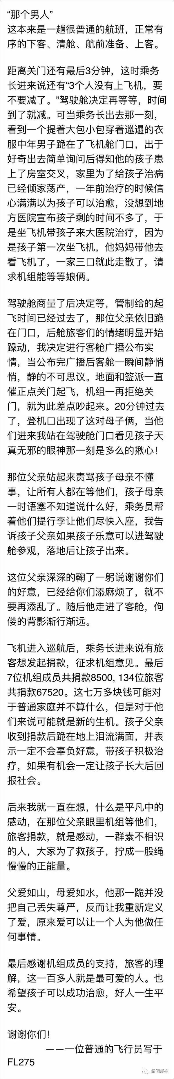 满满一飞机的爱,大爱直上云霄!”昨天一篇微博让无数网友看哭,有人说这是看到最暖心的事了。