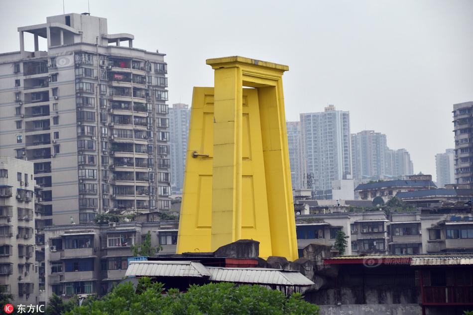 【网红重庆惊现“上帝之门”】2018年5月28日,在重庆南岸区海峡路,一栋房屋顶部悬立着的一扇巨型金色大门,由于特别显眼,被过往民众戏称为“上帝之门”。