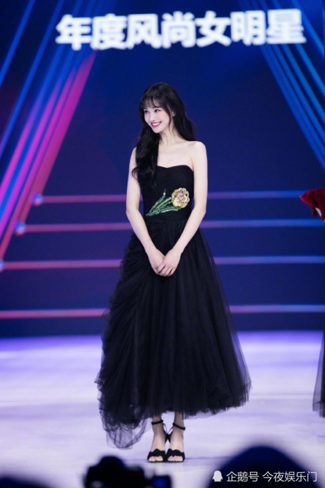 抹胸的造型搭配刺绣元素,下半身的黑色蓬蓬裙,将郑爽修长身材衬托的恰到好处,少女感更是爆棚。站在舞台中央,笑容甜美,十分的耀眼夺目。