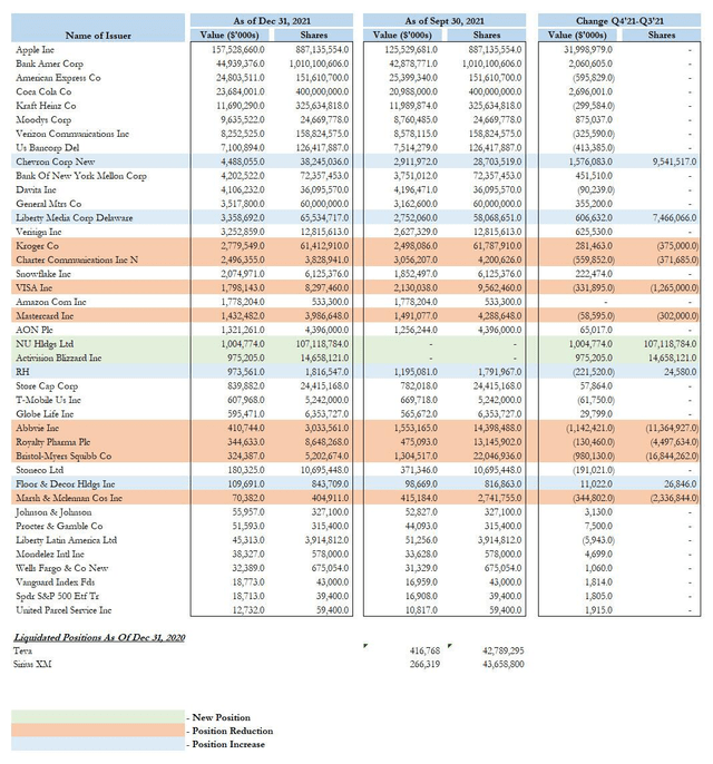 此外,伯克希尔在2021年第四季度也调整了其他股票的投资。
