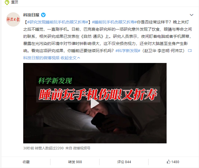 研究发现睡前玩手机伤眼又折寿怎么回事_是真的吗