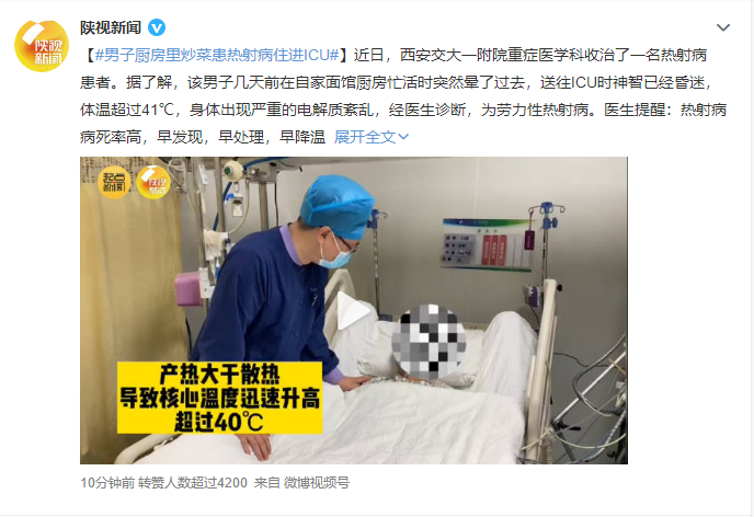 男子厨房里炒菜患热射病住进ICU怎么回事_多少度能得热射病