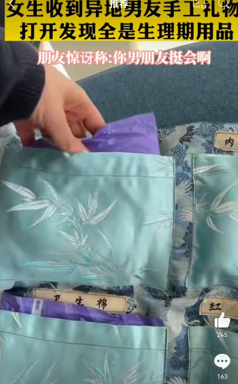 #痛经女生晒异地男友制作的手工包#大男人居然还会做手工包,真是厉害了#你会给女朋友买卫生巾吗#