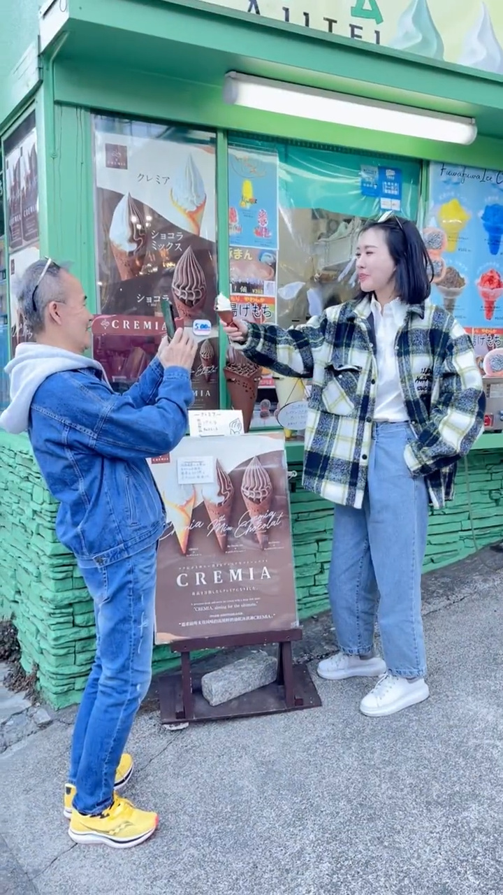 一路上,王石也是花式宠老婆,为田朴珺拍照拍不停。田朴珺则是像小女生一样,吃着冰淇淋,还去投喂王石。两人像极了热恋中的小情侣。