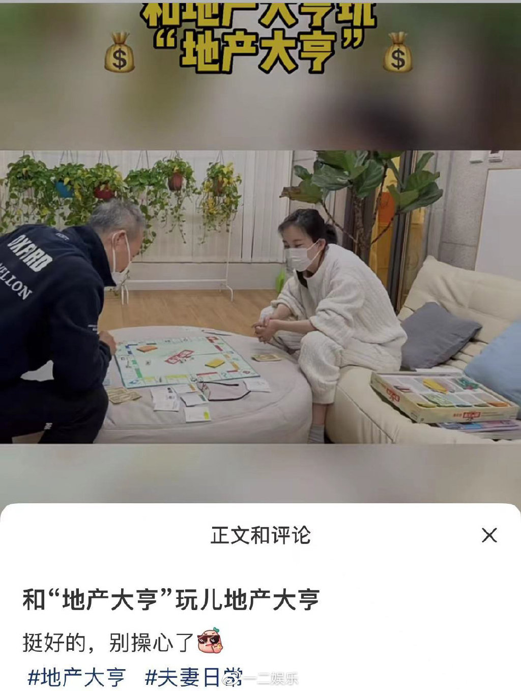 5月5日晚上,王石妻子田朴珺继在评论区辟谣离婚传闻后,又分享了一条与王石在家中秀恩爱的短片,配文:“和“地产大亨”玩儿地产大亨,挺好的,别操心了”,短片中,夫妻俩正坐在客厅内一起玩桌面游戏“地产大亨”,玩游戏的同时,还有说有笑,简直不能更恩爱。