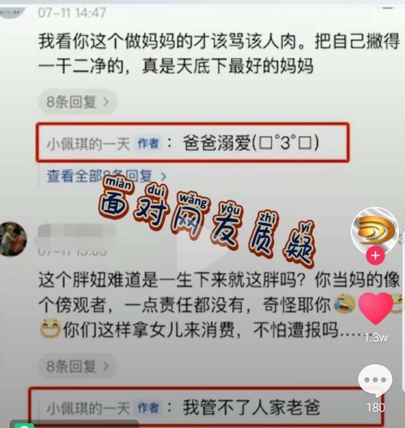 然而,佩琪的爸妈,对这些好心的留言视而不见,还会怒怼网友,不爱看别看。