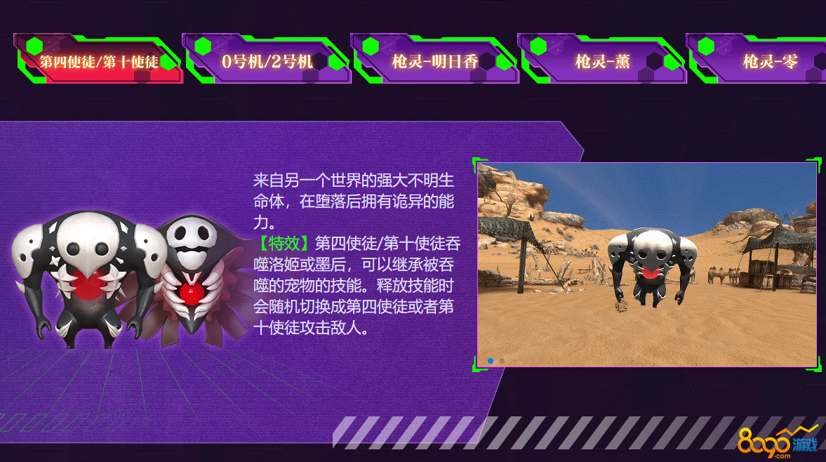 【特效】第四使徒/第十使徒吞噬洛姬或墨后,可以继承被吞噬的宠物的技能。释放技能时会随机切换成第四使徒或者第十使徒攻击敌人。
