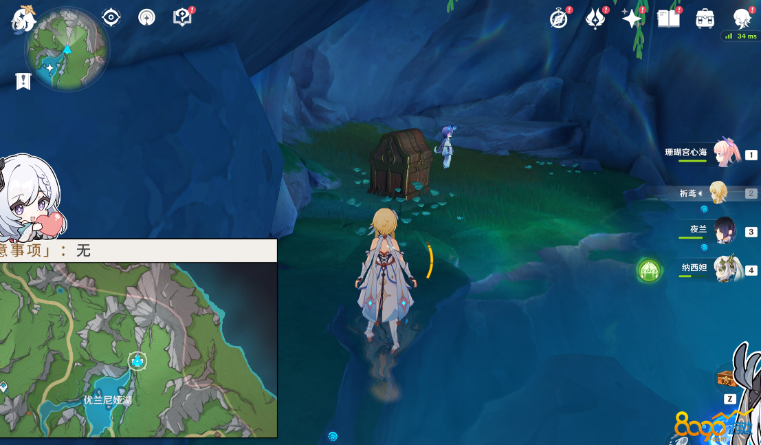 3、湖中垂柳东南部,用章鱼能力消除菌毯,进入水下进入洋流,开启宝箱后获得