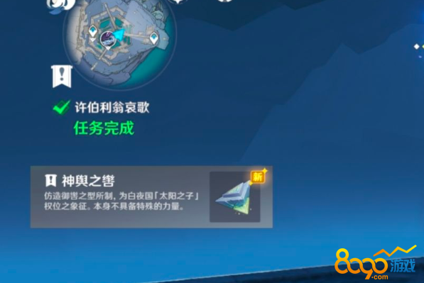 回到大日御舆,往西方纵身一跃,回到初始点位提交三个道具。提交道具后会出现一个传送漩涡,传送漩涡会将你传送到大日御舆的顶端,完成对话后获得道具神舆之辔。