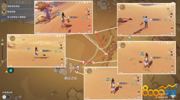 8、沙之眼采集路线:圣金虫数量:4只,就在锚点边上另外一个需要爬山。