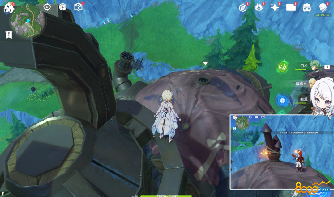 我们需要先收集三个,位于地图东部的丘丘人营地内的正齿轮。集齐3个正齿轮后,来到北边的水泵处,旋转手轮,再击败出现的史莱姆。之后会出现一个漩涡,进入就能登上机器人了,机器人的手上有个「神秘的矿石」,可以顺手拿了。之后来到机器人的头顶,放置3个齿轮,再用火元素点燃烟花。等烟花爆炸后,即可获得成就《未记录的功能》。