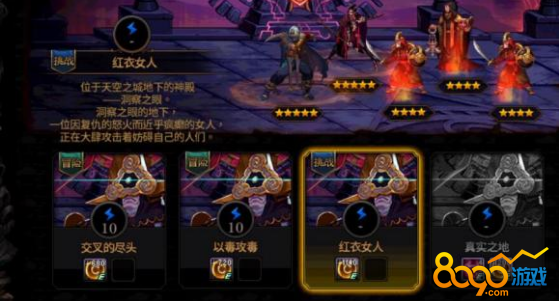 红衣女人这一关建议玩家使用先知辅助,大树后排,光恶魔主C,尼尔巴斯输出也还行,而且你点的生命强化,奶妈放2或者5号位就可以了,站位排列也有一定影响的,过不了就换站位多试几次。也可以用五星光恶魔,一夜八次五星(别点变身),常青藤四星(全点控制),花女王(四星),大树(点远程),我就这阵容打过了全部。