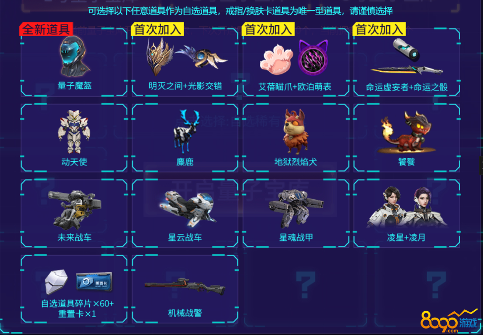 命运之骰首次加入网页自选活动,玩家消耗量子碎片可开启秘宝库,获得奖励,每次开启秘宝库奖励不会重复获得,累积一定次数开箱后,可获得自选奖励。