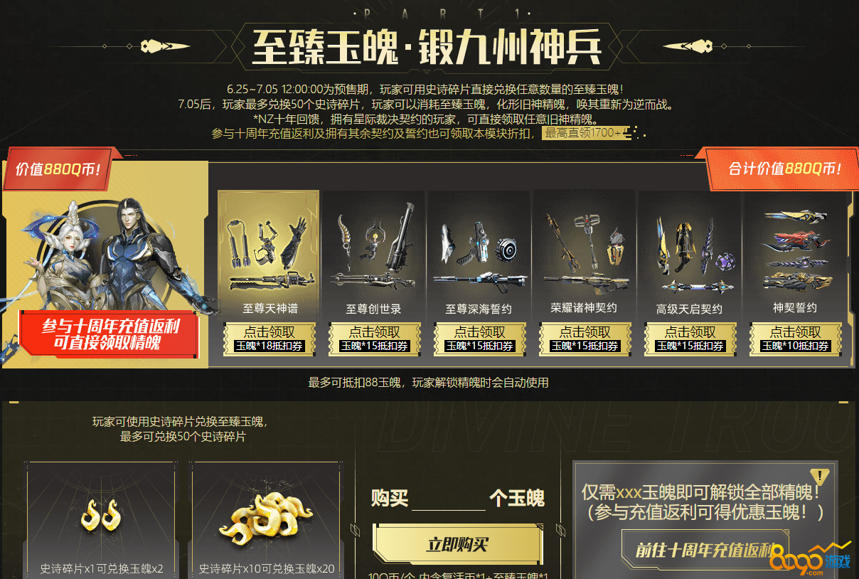 精魄领取券:拥有星际裁决契约的玩家,可直接领取任意旧神精魄。参与十周年充值返利及拥有其余契约及誓约也可领取折扣。