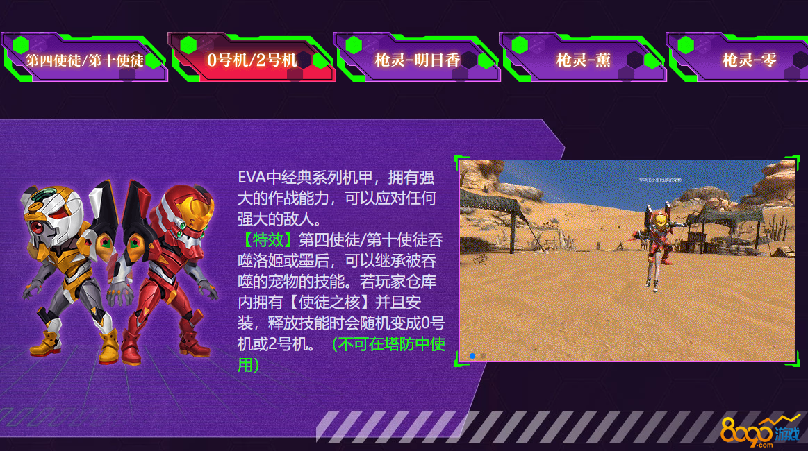 0号机/2号机:EVA中经典系列机甲,拥有强大的作战能力,可以应对任何强大的敌人。